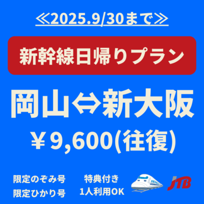 岡山駅出発「お得な新幹線日帰りプラン」